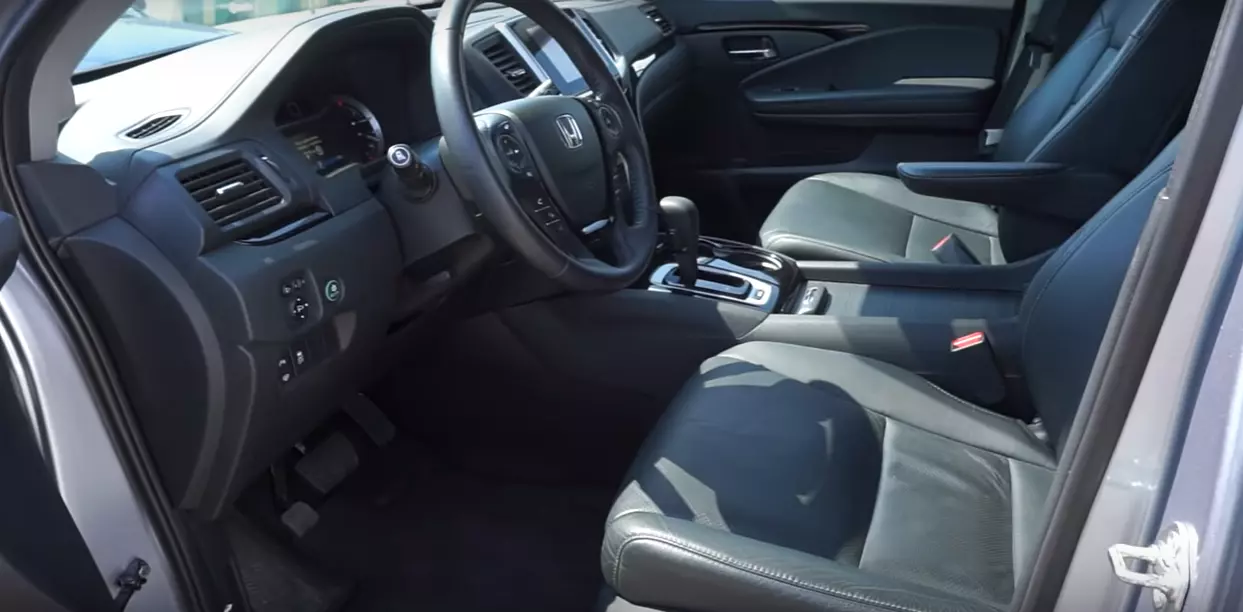 Honda Pilot высокая машина, как обычный внедорожник. Тем не менее у меня отсутствует впечатление, что я сижу в салоне грузовика. Управлять достаточно приятно и легко. Несмотря на большие размеры, хорошо чувствую габариты. Возможно, это благодаря опыту, но значение имеет и отличная обзорность. На заднем диване много места, есть удобные ниши. Также задние пассажиры могут управлять климатом.
